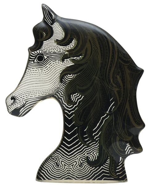 Here we see the "Zebra Horse" by Abraham Palatnik, a playful figure that blends the familiar form of a horse with the striking stripes of a zebra, adorned with geometric patterns. The zebra, often associated with the exotic and untamed, is here domesticated and given a familiar form of the horse, a symbol of power and freedom throughout history. Consider how the horse, from ancient friezes to Renaissance paintings, embodies vitality and movement. Yet, in Palatnik’s work, it is transformed, its wildness tamed, its stripes tamed by the artist's hand. The geometric patterns, reminiscent of indigenous textiles, introduce another layer, evoking a sense of cultural heritage and tradition. We recognize echoes of ancient motifs, repeated across cultures, each iteration imbued with new meaning. The black and white stripes may conjure the Apollonian and Dionysian dichotomy: Order and chaos, reason and emotion. This interplay creates a tension that is both visually stimulating and psychologically engaging. The “Zebra Horse” becomes more than a mere object; it is a repository of symbols, each with its own trajectory through time, converging in this unique creation.