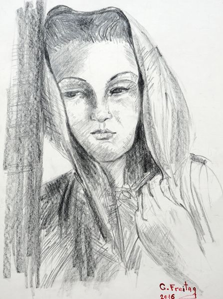 Czobel Bela made this drawing of a peasant girl in 1940. The limited palette, the grays and blacks, it almost makes you feel the weight of history. The texture is really something here; it’s like you can feel the charcoal or whatever dark medium he used dragging across the paper. There's a real push and pull. I mean, look at the way he renders her hands – so gestural, so quick, but they still manage to convey this sense of quiet labor. And that headscarf, it's like a dark cloud framing her face, but there's also a softness to it, a tenderness. It reminds me a little of Kathe Kollwitz, that same empathy for the working class, but Czobel has his own unique way of capturing the humanity in his subjects. What do you think?
