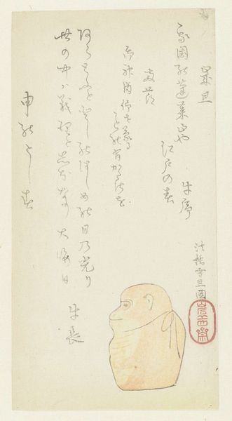 Editor: So, this is Hasegawa Settan's "Chick Hatching from an Egg," made in 1813, using ink on paper. It's simple, but charming. There’s a delicacy to the drawing. How do you read it? Curator: Considering Settan's "Chick Hatching from an Egg" through a materialist lens, the drawing’s simplicity belies a complex interplay of labor and resources. The paper itself, its sourcing, and the ink – what minerals were ground to make this pigment? These details provide context. How was paper production situated in 19th century Japan and who held control? Editor: That's interesting – it’s easy to overlook the raw materials themselves. But what about the *drawing* part of the drawing? Curator: Even Settan's use of line can be viewed as a study of resource management. Note the ink's density and controlled flow as a conscious choice, relating to economy and means of artistic production within constraints of that era. The ukiyo-e style, often associated with mass production, here, rendered uniquely, becomes a meditation on labor. Do you agree that the hatching chick alludes to social renewal and regeneration? Editor: I see your point now about connecting the drawing to the wider systems. The chick breaking free... it's almost as if Settan's subtly hinting at larger social shifts. So it is not just about a single animal; rather, about those making the drawing and what was implied. Curator: Precisely. Analyzing "Chick Hatching from an Egg" through materiality reveals not only artistry but cultural dynamics ingrained in Settan’s means and methods. Editor: This reframing encourages an awareness that makes one consider all material origins and choices. I appreciate you emphasizing production so acutely!