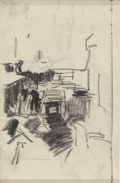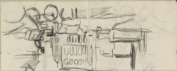 This sketch of two men, possibly in a tavern, was made by George Hendrik Breitner. Look at the composition. Notice the use of charcoal to capture a fleeting moment. The scene is built through an arrangement of marks and lines that define the shapes and forms within the space. Breitner's method of quickly capturing scenes reflects a modern sensibility, embracing the immediacy of urban life. The rough and sketchy style emphasizes the transient nature of the scene. The composition seems spontaneous, with an underlying structure that carefully balances the dark and light areas. The heavy use of charcoal not only defines shape but also communicates the density and atmosphere of the interior. The unfinished quality invites us to consider the relationship between the artwork and the rapidly changing world it depicts. This evokes a sense of modernity that is both visually striking and conceptually rich.
