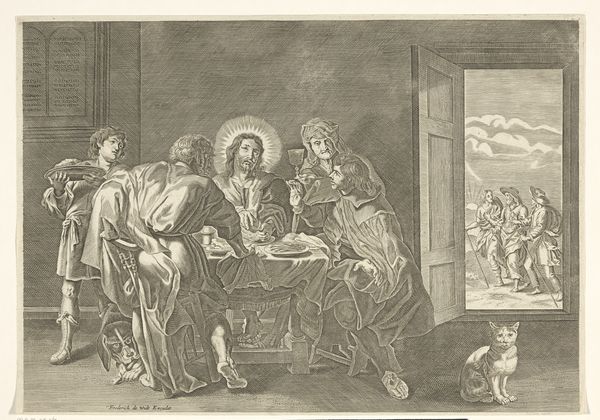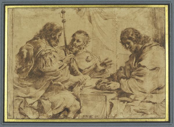 Hans Georg Asam created this pen and brown ink drawing, Christ at Emmaus, sometime between 1649 and 1711. The image depicts a story from the Gospel of Luke in which the resurrected Christ appears to two of his disciples at a table. It offers a window into the religious and artistic culture of southern Germany during the Baroque era, when the Catholic Church was a dominant force in society and art served as a means of reinforcing religious beliefs and values. Asam's drawing uses light and shadow to create a dramatic effect, drawing the viewer's eye to the figure of Christ at the center of the composition. The setting may be a reference to contemporary dining halls, and the objects on the table reflect the importance of food and hospitality in the life of the Church. Art historians use a range of research resources to understand artworks like this one, from archival documents to theological treatises. These sources help us understand the social conditions that shape artistic production, and to appreciate the complex relationship between art, religion, and society in the Baroque era.