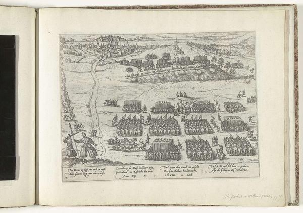 Editor: So, here we have Jan Brandes' "Landgoed van Jan Brandes te Skälsebo," created in 1803. It's a watercolor painting, giving us a bird's-eye view of an estate. It strikes me as quite orderly, almost diagrammatic. What do you see in this piece that I might be missing? Curator: Well, immediately I'm drawn to the symbolism of the land itself. Consider the rise of Neoclassicism: the aspiration to an ordered, rational world, mirrored in landscape. The careful delineation of fields, the structured placement of buildings... these all speak to a desire for control, for a taming of nature itself. Editor: So the landscape isn't just scenery, it's communicating something deeper about societal values at the time? Curator: Precisely. And note the presence of figures within the landscape, perhaps the Brandes family themselves in their carriage. Their inclusion is an assertion of ownership and status within this newly ‘rationalized’ space. What do the muted colours suggest to you? Editor: Subdued… Perhaps it’s about emphasizing the structural and planned elements, and less about romanticizing nature? Curator: Exactly! The limited palette reinforces the idea of control, of a landscape subdued and brought under human will. The visual impact evokes stability, mirroring aspirations to social and political order after revolutionary tumults. Is there any potential friction within the image, can you feel something amiss perhaps? Editor: Hmm… I notice the bare tree on the right, and perhaps a slight wildness in the distant trees around the lake... Maybe a hint that nature can't be entirely controlled? Curator: A flicker of resistance, precisely. The cultural memory persists, acknowledging the tension between idealized order and the inherent chaos of the natural world. It reminds us that symbols can hold multiple, sometimes contradictory meanings. Editor: That's fascinating. I hadn't considered how even a seemingly straightforward landscape could be so rich in symbolic meaning!