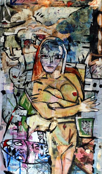 Martial Raysse made this painting, "Made in Japan, La Grande Odalisque," with what looks like vibrant, flat colors, setting up a play between the traditions of painting and pop art. The artist's process here feels a bit like a collage. What really grabs me is the green—that unexpected, almost alien skin tone layered in a way that doesn't quite flatten, doesn't quite create depth. There's a real tension. Then there's the headscarf, an explosion of color and pattern, with real tassels, which feels like Raysse is having a real conversation with the history of painting. He's quoting Delacroix's Odalisque while turning her into something modern, almost like a fashion plate or a billboard. It reminds me a bit of Sigmar Polke, who also messed with high and low culture. Ultimately, it's not about settling on one meaning but embracing the push and pull of seeing.