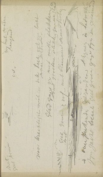 Johannes Tavenraat made this landscape with clouds sketch in the Netherlands sometime in the mid-19th century. Though undated, the drawing provides a glimpse into the artistic practices of the time, capturing a fleeting moment in nature. The sketch, with its delicate lines and focus on atmospheric effects, reflects the prevailing Romantic sensibility. This was a period when artists sought to evoke emotion and capture the sublime power of nature, in contrast to the growing industrialization of Europe. The Rijksmuseum, as an institution, plays a crucial role in preserving and presenting works like these. To fully appreciate this sketch, we can consult historical records, artist biographies, and studies of Dutch landscape painting, all of which offer insights into Tavenraat's artistic development and his place within the broader art world. This artwork then becomes more than just a pretty picture. It is a historical document, with the cultural values of its time.