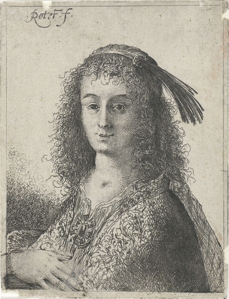 This portrait of a girl was drawn in 1663 by Jan de Bray, using black chalk with touches of red chalk, on paper. De Bray's skill is evident in the way he uses the chalk to create a range of textures, from the soft, almost fuzzy quality of the girl's hair to the smoother surfaces of her skin and clothing. The choice of chalk as a medium is significant. It allowed de Bray to work quickly and spontaneously, capturing a sense of immediacy and liveliness in the portrait. Chalk is also a relatively inexpensive material, which may have made it accessible to a wider range of artists and patrons. This piece may have been a study for a larger painting or a work in its own right. Consider the social context: portraiture was becoming increasingly popular among the middle classes in the 17th century. This drawing reflects the changing attitudes towards art and patronage in Dutch society, where the emphasis was shifting from religious and aristocratic subjects to more secular and domestic themes. By focusing on the materials and making of this artwork, we gain a deeper understanding of its cultural significance, challenging the traditional hierarchies between different art forms.