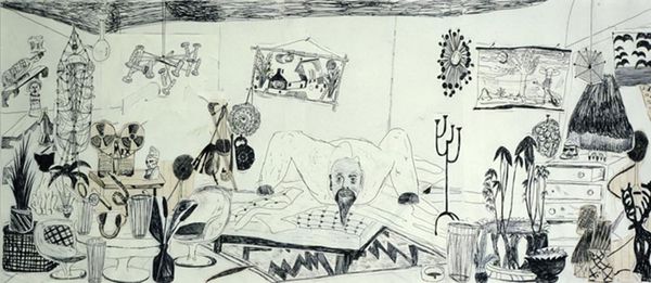 Anila Rubiku made this drawing, Object of Desire, in pencil and colored pencil on paper. Rubiku’s native Albania underwent profound social upheaval in the 1990s, and her art often addresses the place of women within this changing environment. Here, Rubiku employs minimal lines and color to create a psychologically charged interior scene. A seated woman holds a scarlet thread that extends across the composition to a kneeling man. This cord visually binds the two figures together, and could reference the cultural myth of the ‘red thread of fate’. The work creates a sense of unease and tension, reflecting the precarious role of women in post-communist Albanian society. It subtly critiques the institutions of marriage and family and questions the traditional gender roles assigned to women, who are so often regarded as passive objects of male desire. To explore this drawing further, seek out research into Albanian social history and feminist art theory. Understanding the artwork in its full social and institutional context will enable a richer engagement with its complex themes.