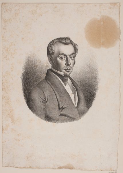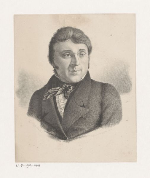 Curator: Before us, we have a drawing titled "Portret van Hendrik Jan Nassau" attributed to Carel Christiaan Antony Last, dating from before 1839. It's currently held here at the Rijksmuseum. Editor: The first thing that strikes me is its intimacy. The soft shading achieved with pencil creates a gentle, almost contemplative mood. It feels like we're observing a private moment, despite the formality of the subject's attire. Curator: It's a meticulously crafted portrait executed in pencil, revealing the artist's skillful manipulation of a humble material to depict the textures of fabric and even the subtle sheen on the glasses. We can see the labor and time involved in layering the graphite. Consider also how access to high quality drawing materials shaped the possibility of such work in this era. Editor: Indeed. Notice how the glasses, though seemingly modern, amplify the sitter's character. The lenses seem to enlarge the eyes, making them intensely focused. Perhaps symbolizing intellect, foresight, or even a hint of the eccentric? The slightly askew bowtie adds a similar layer, it's not quite perfect and contributes a touch of individuality against the conventional attire. Curator: And that attire is crucial, it communicates status and respectability. But I'm also drawn to the way the drawing itself was circulated and consumed, likely existing as part of a printmaking economy where copies would proliferate images and ideals among wider society. What paper was used? What were the conditions of production and reception? These things mattered. Editor: Looking at the larger picture, this portrait exists within a long lineage of depicting figures of power and influence, of course. But there’s a fascinating contrast here – the accessibility of the medium, pencil on paper, paired with the depiction of an obviously privileged individual. Curator: Yes, that interplay is key to how art creates and reinforces hierarchies of both power and taste, what Bourdieu called cultural capital. We can ask questions such as: who could afford to commission or purchase such works, and what did owning these items say about your place in the world? Editor: So, through the symbols within, and a deeper look at materials and creation, we can unpack social conditions represented within a simple, if skillful portrait. Curator: Exactly, it shows how art isn't just about beauty, it's interwoven into social life through material existence, systems of production, and our interactions with the piece as audience members today.