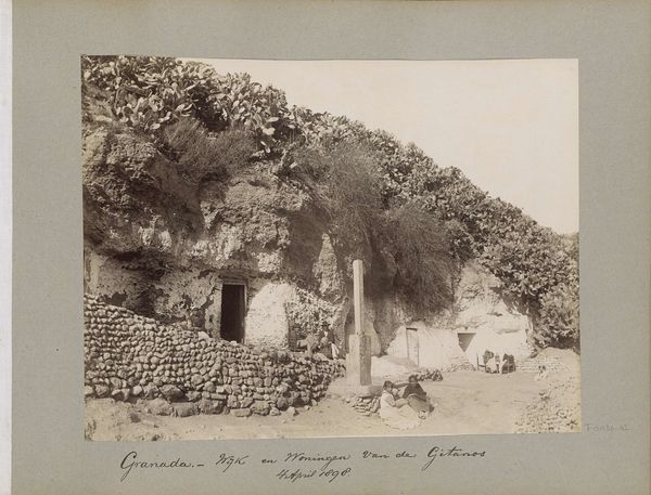Curator: Here we have "Shiloah Pool (Pool of Siloam), Jerusalem" by Robertson and Beato. It’s a gelatin silver print from the Harvard Art Museums. Editor: It has this really ancient, almost haunting stillness. The light is absorbed by the rough stonework, giving everything a kind of weighty presence. Curator: Indeed. It’s interesting how the photographers have framed this sacred pool. The composition draws your eye to the figure sitting beside the water, a poignant detail within this historical landscape. Editor: It feels like a stage. The texture of the stones, the deep shadows, even the figure—they all contribute to this overwhelming sense of antiquity. It reminds me of a half-remembered dream. Curator: Photography, at this moment in time, allowed for a kind of documentation of these sacred spaces—a way of seeing and remembering. Editor: Absolutely, it's as if the pool and the surrounding stones whisper stories from centuries ago. A humbling experience.