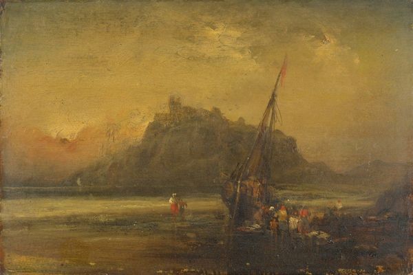 David Cox created this atmospheric scene of Beeston Castle in Cheshire using watercolor, a medium that invites spontaneity and luminosity. Unlike oil painting, which allows for layers and corrections, watercolor demands a more direct approach. The visible brushstrokes and washes of color are integral to the work's impact; they evoke the dampness of the Cheshire landscape and the fleeting nature of the weather. Cox has exploited the fluidity of watercolor to create a sense of movement, particularly in the sky. The thinness of the medium also allows the paper to shine through, adding to the painting's airy quality. While seemingly effortless, the application of watercolor requires great skill and control. Cox was deeply interested in capturing the everyday life of the landscape. He elevates a humble scene into a powerful expression through his mastery of the medium, showing us that there is as much artistry in the process of painting as in the subject itself.