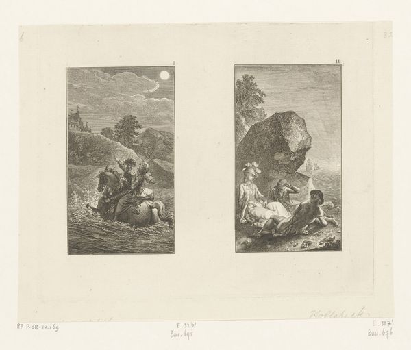 This engraving, "Jupiter, Juno and the other gods receive Hercules", was made by Bernard Picart in the early 18th century. The composition surges upwards, dominated by the swirling forms of clouds and the ascending figures of classical deities. Picart uses a dense network of lines to create texture and volume, particularly in the rendering of drapery and cloud formations. The figures are arranged in a dynamic, almost chaotic, cluster. Hercules is being lifted, a dramatic moment emphasized by the contrast between the darker foreground and the lighter sky. This ascent challenges traditional hierarchies, blurring the boundaries between mortal and divine realms. The semiotic elements are evident in the classical iconography. Hercules, a symbol of strength and virtue, is received into the pantheon, reflecting contemporary ideas about heroism and apotheosis. The engraving doesn't just depict a scene; it constructs a dialogue between classical mythology and early modern ideals. The visual language and composition invite viewers to contemplate shifting ideas about power and representation.