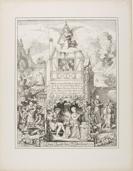 Editor: Here we have Thomas de Leu’s "Adoration of the Shepherds," created around the late 16th or early 17th century. It’s a detailed engraving, and I’m struck by how the artist uses line and form. What aspects of the material and production stand out to you? Curator: As a print, it was made to be reproduced, circulated, and consumed. Consider the economics of image production. What social classes had access to these images, and how did that shape the artwork's function in society? Editor: So, it was more about mass appeal than individual expression? Curator: Not necessarily, but the means of production is key. The labor involved, the cost of materials, and the intended audience all impacted its creation and reception. Editor: That’s a helpful perspective; I didn't think about the role of production so directly.