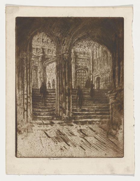 David Young Cameron made this etching, ‘Mar's Work, Stirling. No. 2’, without a known date, and you can find it here in the Art Institute of Chicago. What strikes me about this piece is how Cameron uses line not just to describe, but to create atmosphere. Look at the doorway; the darkness isn't just a shadow, it's a palpable presence, built up with these tiny, insistent marks. You can almost feel the cool air coming from within. The texture of the stone is beautifully rendered. It's rough and weathered, full of tiny imperfections. The building itself seems to breathe, to have a life of its own, thanks to Cameron’s sensitive touch. It's reminiscent of Piranesi, that master of architectural fantasy, but with a Scottish twist. Cameron isn’t just documenting a building; he's capturing its soul, its history, its secrets. In the end, it reminds us that art is about more than just what we see, it's about how we feel, and what we imagine.