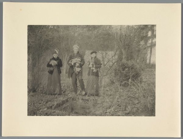 Editor: Here we have a black and white photograph titled "Groepsportret van Karl With en drie onbekende vrouwen liggend in het gras," which translates to "Group portrait of Karl With and three unknown women lying in the grass." It was taken sometime between 1920 and 1936. They're literally surrounded by tall grass, like they're swimming in it. It gives me a kind of secluded, peaceful feeling. What strikes you when you look at this, curator? Curator: It's funny you say swimming; that tall grass certainly evokes a feeling of being submerged, doesn't it? For me, it’s about that specific moment captured; what were they talking about, what joke had just been told, what secrets were they sharing? It makes you want to join them. I wonder, who was Karl With, and what’s the relationship between these four individuals? It begs the question: is the act of anonymity as portrayed here, liberating or restrictive to the narrative, don't you think? Editor: That's such a fascinating point. Not knowing adds this mysterious layer, right? Maybe it’s also about escaping definition, escaping the strict portraiture traditions. Was Karl With the photographer, perhaps? The three women are thus anonymized not because they are unknown but by aesthetic choice. Curator: Precisely. The ambiguity really fuels the imagination, allowing us to project our own experiences and relationships onto this scene. The realism inherent with monochrome photography further contributes a touch of familiarity with the mundane: the viewer suddenly finds themselves amidst the scene, making sense of all the gazes locked in time. What could be more intriguing? I am particularly impressed by how simple composition blends harmoniously with nature's abundance, and manages to turn this ordinary picture into a visual poem. Editor: I agree. This has made me look at seemingly simple portraits very differently, realizing the depth that anonymity can bring. It's almost more intriguing than knowing everything! Curator: Exactly! The absence of detail is, in itself, the point. By doing that the artist has challenged conventions of portrait photography through simplicity!