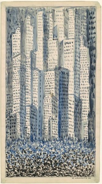 Editor: So, this is Fernand Léger’s "New York," a mixed-media collage and painting. It's fascinating how he combines geometric shapes to evoke the cityscape, but there's also something very abstract about it. What symbols jump out at you? Curator: The most striking elements are the contrasting geometric forms representing urban architecture alongside these biomorphic shapes that seem to float freely, yes? It is an almost diagrammatic city, not necessarily a lived-in space, but a conceptual one. Consider the ladder-like scaffolding, an emblem of constant building and renewal in New York. How do those associations strike you? Editor: They feel disjointed, like two separate languages forced together. Is that intentional, do you think? To capture a sense of urban disconnect, even amidst constant change? Curator: Possibly. Léger experienced New York’s intense industrial energy firsthand, and this piece seems to mediate those two forces – nature and technology – that define the modern experience. Does the layering of shapes over buildings change your feeling about them? Editor: It does – it's less about recognizable structures and more about impressions and feelings that add some lightness, rather than purely cold steel and geometry. They help break up what would otherwise feel oppressive. Curator: I'd agree. The stark contrasts in form serve as powerful visual cues representing both the excitement and alienating qualities of modern life, and what could be easily lost. Editor: I didn’t think about the forms working against oppression, but that makes so much sense. I see Léger wrestling with representing this burgeoning metropolis. Curator: Yes, me too. Thinking about it symbolically helps unravel the complexity, adding to a fuller understanding of cultural tension.