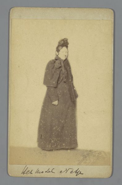 Editor: Here we have a photograph, “Portret van een onbekende Japanse vrouw,” taken sometime between 1890 and 1920 by S Hachiya. There's something serene yet formal about it; the subject looks directly at the camera. What do you see in this piece? Curator: I see a fascinating intersection of tradition and modernity, and a silent commentary on the role of women in Japanese society at the turn of the century. This photograph isn’t simply a portrait; it's a staged presentation, a negotiation of identity in a rapidly changing world. The woman is in traditional dress but being photographed – what does it mean to participate in this modern medium while embodying tradition? Editor: That's a great point! So, it is a cultural adaptation, perhaps? The integration of photography is in itself transformative. Curator: Exactly. The very act of commissioning such a portrait – or even agreeing to be photographed – suggests a level of agency, even resistance, against more patriarchal norms that traditionally confine women to the domestic sphere. It makes me think about visibility: who gets to be seen, and how? The woman's gaze is direct and unwavering, a claim to visibility and perhaps power. Editor: It's intriguing how this photograph becomes more complex the more we look at it, she's not just passively sitting, waiting to be seen. Curator: Precisely. And the photographic medium itself raises questions. Was it common for women to have photographs of themselves? This image invites us to examine historical power dynamics. Editor: Thank you, this really opens up my perspective. I initially just saw a nice portrait, but now I understand the photograph's complex interplay between identity, agency and visibility in its sociohistorical moment. Curator: Indeed. The image makes one contemplate our current relationship with image-making as well. How are identities curated and negotiated? It is all so interwoven.