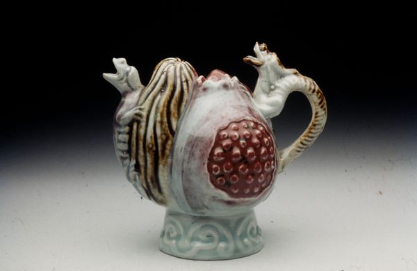 Editor: Here we have a porcelain teapot, crafted around 1734 by the Meissen Manufactory. It's this incredible sculpture, a fantastical bird form. I'm struck by its whimsy, that a practical object becomes an almost surreal display of artistic skill. What social forces were at play in the creation and popularity of such an object? Curator: A fantastic question. Consider the rise of porcelain itself in the 18th century. It wasn’t simply about owning a teapot; it was about signaling status and participation in an emerging culture of luxury and global trade. Meissen was at the forefront, directly patronized by royalty. Editor: So, it's tied to this almost competitive consumption? The details feel so deliberately playful, the little dog on the lid! Curator: Precisely. It's visual performance of wealth and taste. Think about the resources required - access to high-quality materials, skilled labor, and then consider the audience: wealthy individuals displaying these objects in their homes to impress guests. It wasn’t just tea being served, but a potent statement of power and connection to wider global networks. What does the dog signify, do you think, in relationship to the exotic bird form? Editor: Hmm…perhaps the dog, a domestic animal, highlights the owner's control over nature, even exotic imports, made familiar and palatable through art? Curator: Exactly! The dog might represent domesticity, loyalty, and the owner’s power to tame and display the world around them within the confines of their home. The exotic bird represents how Europe and Asia were colliding in trade, with new goods and ideas shaping social rituals around consumption and displays of status. Editor: That’s fascinating! It’s amazing to realize how much history is packed into what looks like a fancy teapot. Thanks! Curator: It really speaks to how objects can act as powerful reflections of the values, ambitions and politics of their time.