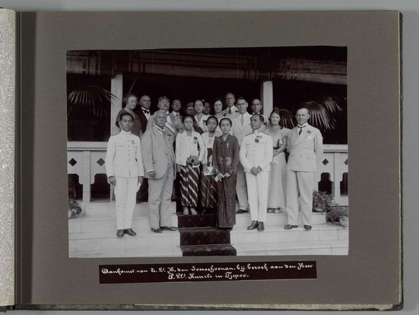 This photograph, titled "Aankomst van Z.V.H. den Soesoehoenan en zijn gevolg in het Hotel Tjepoe," captures a moment steeped in the complexities of colonial Java. While the photographer remains anonymous, the image speaks volumes about the power dynamics at play. The Soesoehoenan, a Javanese ruler, stands with his entourage at the Hotel Tjepoe. The photograph, in its composition and subject matter, reflects the intersection of Javanese royalty and Dutch colonial influence. Hotels like Tjepoe were nodes in the colonial network where locals and colonizers came into contact. The image evokes questions about the negotiation of identity and power. How did the Soesoehoenan navigate his role under colonial rule, and how was this reflected in his public appearances? The photograph is a study in contrasts, subtly revealing the intricate and often fraught relationships that colonialism engendered. It’s a scene of cultural exchange and the ongoing negotiation of identity.