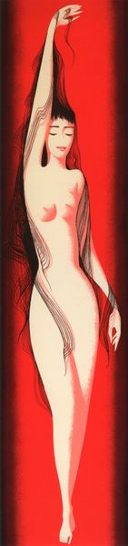 Editor: This is Rolf Armstrong's "Midnight Nymph." I'm immediately struck by how the figure emerges from the darkness, like a memory taking shape. What symbols or archetypes do you think Armstrong is playing with here? Curator: That emergence is key, isn’t it? Notice how light becomes almost a character in itself, illuminating and obscuring. The "nymph" archetype pulls from a long, often problematic history—but here, consider how Armstrong both engages with and potentially subverts the typical representation. Editor: Subverts? How so? Curator: Nymphs are traditionally symbols of overt sexuality and accessibility, often within very male-centric narratives. Yet, consider her pose, her implied movement away from the viewer, the obfuscation of the shadows. Is she offering herself, or is she just present in her own space, simply being, defying easy consumption? Is it her body, or something more about transformation? Think about metamorphosis as a form of liberation rather than confinement. Editor: So, the darkness is almost protective, allowing for her own narrative rather than one imposed by the viewer? Curator: Precisely. That's one compelling reading, anyway. It connects her back to primordial concepts of the feminine divine—darkness not as absence but as potential, gestation. It gives her the power to become. Editor: I never would have considered all of that. I mostly saw a beautiful figure, but now it feels deeper, more complex. Curator: Which goes to show that even what seems familiar can hold a universe of untold stories. Editor: This was illuminating! Thanks for expanding my understanding of how symbols affect emotional storytelling in art.