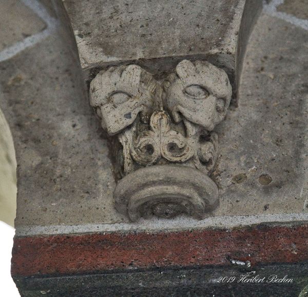 Curator: Looking at these magnificent Capitals of St Mary's Church in Bergen, Norway, dating back to approximately 1180, I’m immediately struck by their architectural significance within the Romanesque style. What springs to mind for you? Editor: A grizzled weightiness! So much stoic, gray texture... Centuries clinging on. You almost feel the weather eroding the details as you look. Makes me think of ancient secrets whispered in stone. Curator: Indeed. The carving itself reveals so much about the period’s aesthetic values. Note the geometrical reduction and stylization. Each volute and leaf, each animal form, has been rendered according to specific conventions—emphasizing structure. Editor: Conventions, sure, but they also seem like the sculptor was having some fun. Like with the creature on the right. Is it a badly drawn lion? Or is that a knowing wink at something else entirely? It's so much quirkier than some grand statement about power and piety. Curator: That brings up an important point: the tension between symbolism and aesthetic function. Romanesque sculpture often features complex iconographic programs, but equally crucial is how these elements serve the building's overall tectonic logic. How the capital mediates between the vertical thrust of the column and the weight of the arch above. Editor: It's that push and pull, I think, that keeps it interesting. The way these forms communicate upward support, all while also feeling deeply connected to folk stories. What stories could that sculptor tell, you know? And even as the stone weathers, the sense of personality endures! Curator: I concur completely. In analyzing this work, we gain deeper insight into how medieval artisans ingeniously fused symbolic meaning with structural necessity. Editor: I will remember not the technical mastery of these capitals but the mysterious humor locked away for nearly 1000 years. That’s why I look at art, I think, to connect with souls over the great chasm of time.