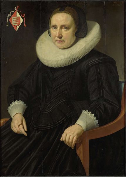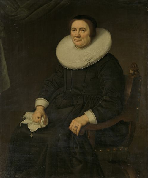Anthony van Dyck painted this portrait of a noblewoman with a parrot in the 17th century. The sitter's imposing presence is immediately striking. Van Dyck masterfully uses visual elements to convey her status and character. Her stern expression and erect posture project authority, amplified by the stark contrast between her dark dress and the crisp white ruff that frames her face. The red curtain backdrop and the classical column further enhance the composition, adding layers of grandeur. The formal structure of this painting, from the detailed lace cuffs to the parrot perched on the chair, operates as a complex sign system. Each element contributes to a coded message about wealth, refinement, and cultural sophistication. Yet, it's the woman's gaze, direct and unwavering, that ultimately destabilizes any fixed interpretation, inviting us to reflect on the power dynamics inherent in portraiture itself.