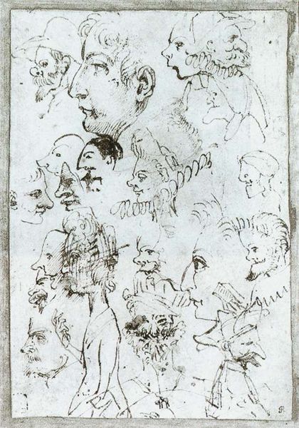 Francesco Melzi rendered these seven caricatures in pen and ink, a study in physiognomy and human expression. Here, we witness the Renaissance fascination with capturing the essence of character through exaggerated physical traits. Observe the motif of the laurel wreath, a symbol of triumph and intellectual prowess, adorning one of the figures. This symbol echoes through antiquity, from the emperors of Rome to the poets of the Renaissance. Yet, here, it is placed upon a face contorted in what seems to be an expression of bitterness, complicating the symbol's traditional meaning. Such juxtaposition evokes complex psychological states. These caricatures tap into a deep-seated human tendency to judge and categorize, a mirror reflecting our own prejudices and insecurities. This is not merely playful jest; rather, it is a profound exploration of the human condition, echoing across centuries. The faces of these figures embody a cyclical narrative of ambition, vanity, and the inevitable decay of human glory.