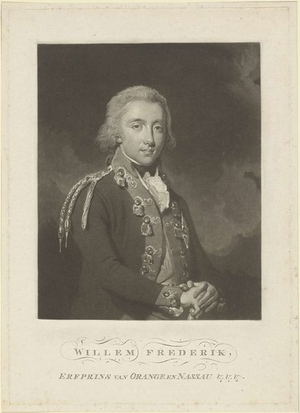 This small portrait of Willem I Frederik, King of the Netherlands, was made anonymously using the technique of etching. The image is defined by its linear quality, achieved by drawing through a wax-coated metal plate and then using acid to bite away the exposed lines. This creates grooves that hold ink, which is then transferred to paper under high pressure. See how the intricate details of Willem’s jacket and the decorative background are rendered with fine, precise lines? Etching allowed for relatively easy reproduction, making images accessible to a wider audience. The process demanded skill and precision, linking it to both artistic and industrial practices. Consider the labor involved in each stage, from preparing the plate to printing the final image. This portrait is a reminder that even seemingly simple images involve complex processes and social contexts. Appreciating the materials and techniques employed allows us to see beyond the surface representation and understand its broader cultural significance, blurring the lines between craft and fine art.