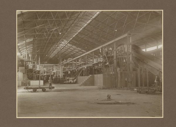 Editor: Here we have Atelier Umbgrove’s "Draaierij," a gelatin-silver print made between 1929 and 1932. It looks like a photograph of a factory floor bustling with activity. There’s such an overwhelming amount of detail and so many figures blurred at work; it feels so grounded in depicting real, manual labor. What's your interpretation of it? Curator: This image really speaks to the intersection of art and industry in the early 20th century. We have this grand interior, light flooding in, workers positioned almost like figures in a classical composition. Do you think the photograph is just showing the literal subject? Editor: No, not entirely. Maybe the artist is saying something about the beauty of industrial production and how its scale shapes our lives? Curator: Precisely! Consider the political context: This was during a time when ideas about labor, production, and the role of the working class were heavily debated. How do these images reinforce or challenge social hierarchies? The 'Draaierij' serves almost as propaganda. It celebrates progress and suggests the possibility of modernization and standardization and mass-production being an intrinsic human value. Editor: So, by presenting this seemingly objective view of a factory, Umbgrove is also making a statement about the societal value of this labor and its space? Curator: Exactly. The public display of an image like this says a great deal about whose story gets told and how. It prompts the viewer to ask what image makers intend, and to whom is the message directed? Editor: I had not considered how a factory interior could have such resonance in terms of historical context. This makes me reconsider photography's objective view of its subject and instead consider the context around production and viewership. Curator: Indeed, now you can consider images through the lens of cultural values.