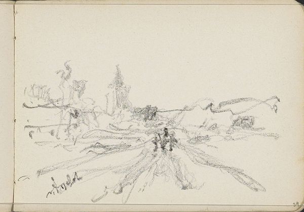 Editor: This is "Fight in a Mountain Pass," a pencil drawing by George Hendrik Breitner from 1872. The flurry of action really strikes me; it feels chaotic, yet each figure is carefully rendered. How do you interpret this work? Curator: Consider how a seemingly simple medium, like pencil, can carry such a loaded message. What is the collective memory associated with images of conflict, and how does Breitner tap into that? We see a timeless scene of struggle – figures clashing, falling. Doesn't the setting itself, a mountain pass, become a symbol of challenge and resistance? Editor: Yes, absolutely. The mountains amplify the feeling of being trapped, almost. It's a landscape of entrapment and death. I am really taken by how fleeting it looks as if caught mid-explosion. Curator: Exactly! Note how Breitner doesn't give us a clear hero or villain. The iconography of heroism is subverted. Instead, it’s about the universal experience of conflict and suffering. It begs us to question what visual shorthand we rely on when perceiving war, conflict, struggle. And does that resonate even today? Editor: It does. We're still seeing conflicts play out across the globe, and this drawing makes me think about the individual human cost behind those headlines, rendered visible through the falling soldiers in an ambiguous and timeless scene. Curator: I’m glad you noted the drawing's "fleeting" appearance. Do you feel the looseness contributes to how the scene conveys greater meaning and truth, unburdened by more traditionally 'illustrative' styles? This drawing reminds me of a contemporary etching; so expressive for its time! Editor: Absolutely! I think its raw and energetic execution enhances the visceral feeling. It is a stark departure from classical portrayals of war. It makes you consider more contemporary depictions and whether, to some extent, the media maintains any common visual cues about war, regardless of style. Curator: An interesting parallel. The drawing serves as a constant reminder to deconstruct, consider, question…visual representations and symbols relating to collective and subjective meanings of power, sacrifice, struggle, loss. Editor: Thanks. It really gives a fresh look at Breitner's work beyond his paintings and reveals hidden layers in depictions of war.