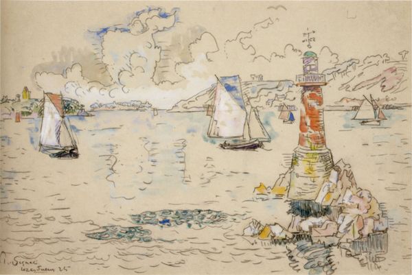 Paul Signac made this watercolor and pencil work depicting Barfleur's port sometime around the turn of the century. The scene captures a blend of maritime activity and the enduring presence of the church. It reflects the cultural context of France at the time, with its blend of tradition and modernity. Signac, associated with the post-impressionist movement, was interested in capturing fleeting moments and the effects of light. The wispy style contrasts with the firm edifice of the Church on the left, a sign perhaps of changing cultural values in the French third Republic. As historians, we delve into archives and cultural studies to understand how artists like Signac engaged with their rapidly changing world. Works like these can be seen as documents of social life, capturing the visual essence of a moment in time.