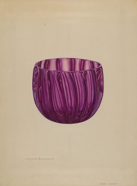 John Dana created this watercolour painting of a glass tumbler. The composition is immediately striking for its simplicity; the tumbler is centered against a pale background, drawing our eye to its form and colour. Dana has meticulously rendered the facets and curves of the glass, playing with light and shadow to give the object a palpable sense of volume. The choice of a deep purple hue is significant. It evokes a sense of luxury. This elevation of the everyday object invites a deeper consideration of its structure. The tumbler becomes an exercise in form rather than function. Ultimately, Dana’s attention to detail, colour, and form transforms a simple glass into a study of aesthetic value. The painting prompts us to consider how artistic representation can imbue ordinary objects with extraordinary meaning.