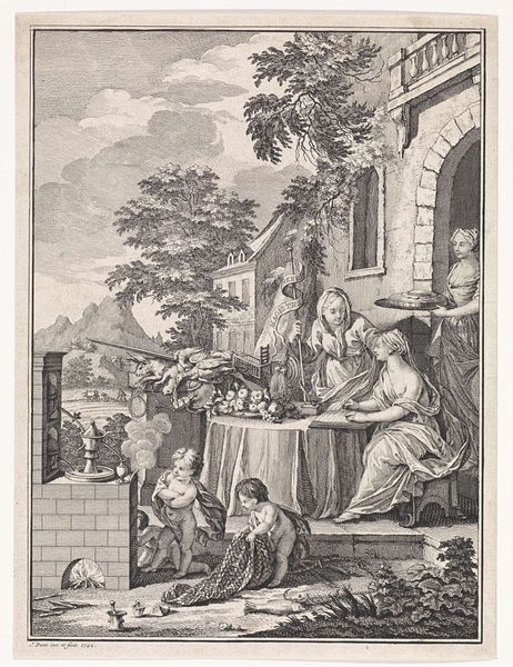 Editor: So, here we have "The Adoration of the Angels" by Jean-Baptiste Le Prince, a drawing. It has such a gentle feel, doesn't it? What captures your eye in this piece? Curator: Its airy quality, definitely. It reminds me of a dream, light and flowing. Le Prince wasn't afraid to leave things unfinished, to let the white of the paper become part of the composition. Makes you wonder what he was thinking, doesn't it? Almost like he wanted to capture a fleeting moment. Editor: A fleeting moment, I like that! It makes it seem more intimate. Curator: Exactly. It's as though we're peeking into a private, sacred space.
