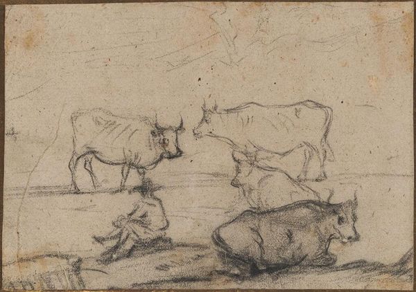 Editor: This is Cornelis Saftleven's drawing, "Two Pig Heads." I find the starkness of the drawing, just these two heads, quite unsettling. What do you see in this piece, beyond the obvious subject matter? Curator: The pig, often associated with gluttony and ignorance, carries a rich symbolic weight. In Saftleven’s time, such imagery might have evoked moralizing themes, a vanitas perhaps, reminding viewers of mortality and earthly failings. Does the rendering style add another layer of meaning? Editor: Yes, the sharp lines feel almost clinical, not sentimental at all. Curator: Precisely. This cold detachment perhaps amplifies the underlying message about human nature. It's fascinating how simple sketches can hold so much cultural reflection. Editor: I never considered the pig's symbolism so deeply. Thanks for pointing that out!