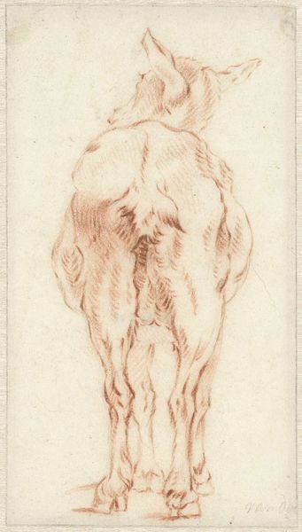 Curator: Here in Gallery 12 we have "Vrouw voorover gebogen, op de rug gezien," or "Woman Bent Forward, Seen From the Back," an ink drawing on paper, likely made between 1611 and 1661 by an anonymous Dutch artist. Editor: The economy of line here is quite striking. Despite its sparseness, there's an undeniable heft and sense of gravity to the figure. Curator: Absolutely. The artist employs primarily contour lines to define form, while internal hatching suggests shadow and volume. Note the careful orchestration of the drapery folds, creating rhythm. Editor: The positioning of the body carries symbolic weight. The bowed posture and exposed back evoke themes of vulnerability, humility, perhaps even grief. This is not simply a figure study. The downcast gesture could be one of submission. Curator: Or even simply labor. Gesture is not intrinsically meaningful, you know? This artist uses the line in a baroque style—but what really defines this image for me is how the marks come together to evoke both human form and an exploration of perspective, light, and shadow. I'd be reluctant to reduce its meaning to an implied narrative. Editor: But that refusal can be limiting, no? Art doesn’t occur in a vacuum. These images enter cultural consciousness, shaped by our histories and mythologies. Here, even without a discernible face, the form triggers something archetypal. Curator: You are absolutely correct—but remember how useful, formally, a single stroke of the pen could be. Think how effectively line conveys not just shape but also the illusion of weight, space and movement on this little sheet. That is very important! Editor: And yet, I cannot ignore that resonance! Both are essential, I suppose, and appreciating the visual push-pull only deepens the mystery. Curator: Well said, seeing how form is itself, in essence, meaningful. Editor: Precisely! It’s why we keep looking, isn't it?