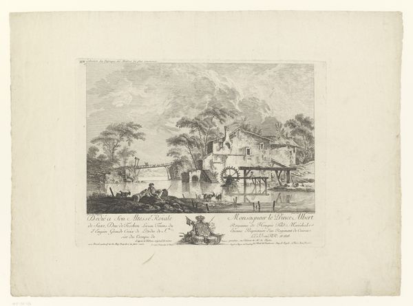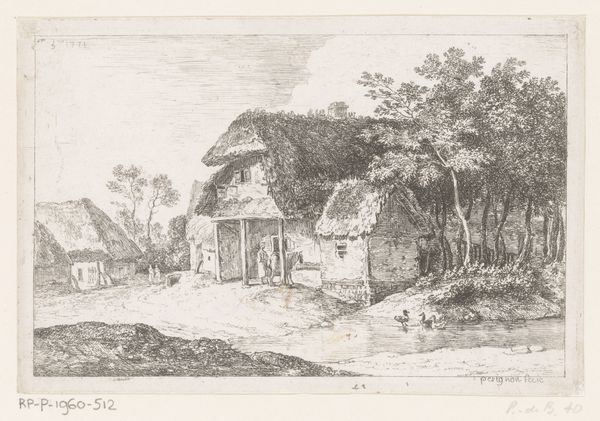 Johann Georg Hertel created this etching titled, 'River Landscape with a Farm by the Water,’ around the mid-18th century. It depicts a modest farm nestled in a serene landscape, typical of the era's fascination with rural life. Made in Germany, this image reflects the period's complex relationship with nature and society. The farm, with its smoking chimney, suggests a self-sufficient, working community. However, this idealized image contrasts sharply with the realities of rural poverty and social hierarchies that defined the time. We can ask: does Hertel's landscape simply reflect the aesthetic preferences of his patrons, or does it engage with broader social and economic issues? To fully understand this work, we can research German social history, examining land ownership, rural economies, and the era's artistic conventions through books, archives, and other prints. Only then can we start to understand the visual codes and historical associations in this image.