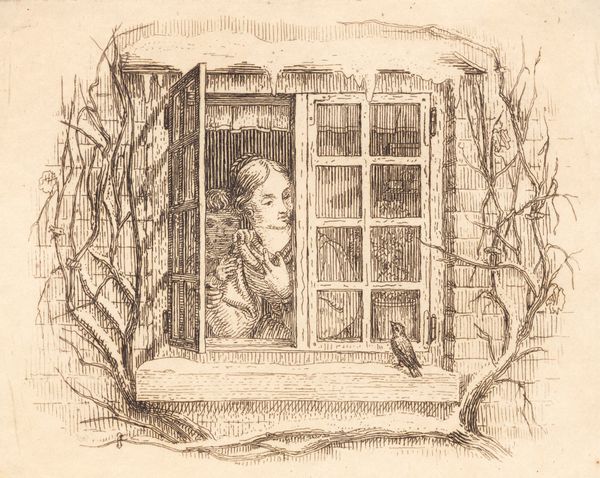 Martinus Rørbye created this illustration for "Halvhundrede Fabler for Børn" using pen and ink. The fine lines delineate a winter scene, where we see a woman and child framed by a window. Consider how the artist's choice of material influences the image. The stark contrast of ink on paper emphasizes the crispness of the winter air and the bare branches framing the scene. Pen and ink, though a traditional medium, allows for incredible detail. Look at the varied line weights that create depth and texture, from the rough brickwork to the delicate features of the figures. Illustrations such as these were an essential part of the growing print culture of the 19th century. The labor involved in creating these images, and the means of their reproduction, speaks to the democratization of art through mass production. It’s a world away from unique works of painting, and asks us to think about the value we place on images that can be widely disseminated.