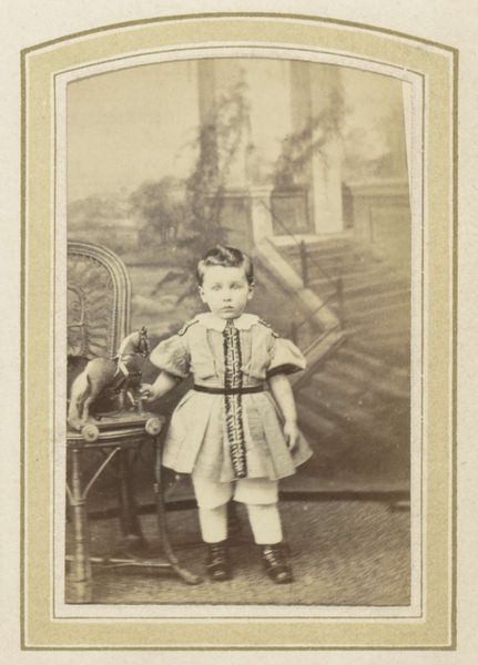 This is a photograph by Kasparus Karsen, titled 'Portrait of a Girl in a Dress with Belt on a Chair'. Dating from the late 19th century, this image captures a specific, historical performance of girlhood. The girl’s elaborate dress and the formality of the pose speak to the conventions of middle-class portraiture, designed to project an image of respectability and status. And yet, her somewhat dour expression complicates this narrative. Is this the face of a child constrained by societal expectations? The cinched waist of the dress, while fashionable, also suggests a binding, a literal and symbolic restriction of her freedom. The photograph invites us to consider the ways in which children, particularly girls, were constructed and constrained by the social norms of the time. It is both a record and a question mark, prompting us to reflect on the historical construction of identity.