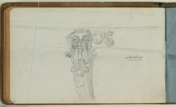 Curator: Here we have Niels Larsen Stevns' "Studie af gravsten," a pencil drawing dating from around 1932-1935, housed here at the SMK. The study is a geometric sketch of what seems to be an ornate grave stone. Editor: There's an appealing starkness to it, yet also an intriguing tenderness due to the soft lines. It seems so fleeting and simple but those twirls and curls suggest to me an interesting depth of artistic contemplation and the heaviness that death evokes. Curator: Precisely, it's a fascinating contrast. Stevns draws upon visual cues that date back to Medieval Europe, incorporating traditional patterns for communicating remembrance and spirituality. Note the cross surmounting an embellished stem—an immediate evocation of mourning, the death of Christ, or honoring the dead, even. Editor: It's fascinating how this visual language persists. You see that cross, yes, the symbol of the crucifixion – yet one can easily read this as the patriarchal violence inherent within it: how symbols continue to shape how we deal with the inevitable, with grief. The geometric ornamentation reminds me of carved Celtic designs; those spirals read as cyclical: how our history impacts even our mortality, and our continued desire for continuity or even a denial of it. Curator: Right! Geometric patterns also tap into cultural memory—in the past they were applied to assist those viewing a given image to access, to remember. These spirals become a trigger to access a larger understanding or framework of concepts. Editor: Looking closer, I see an incredible delicacy despite the boldness of the design itself. The unfinished sketch gives it this vulnerable, temporary quality... which honestly strikes a chord with me about our contemporary feelings about grief: How can our grief be as temporary as it needs to be without denying respect or mourning for that loss? Curator: A brilliant observation. The rawness heightens the overall effect, prompting deeper considerations. It is very typical that Stevns made lots of drawings throughout his practice. These small and perhaps fast captures are incredibly emotional. Editor: Indeed. I keep returning to that tension, between the fragility of a pencil sketch and the immutable symbol of a gravestone... I will keep thinking about that dichotomy for quite some time. Curator: As will I! The piece reveals how artists are perpetually in conversation with memory, culture, death, and symbolic forms from our visual past.