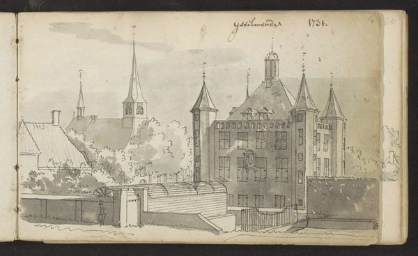 Abraham de Haen the second created this drawing of Kasteel Ooij using pen in gray ink and brush in gray and brown wash. The artist has captured the grandeur of Kasteel Ooij, likely employing a quill for the fine lines and a brush for the subtle shading that defines the building's form. The choice of gray and brown wash over traditional colors speaks to an interest in the tonal qualities of the architecture itself. Consider the skill involved in rendering such a detailed architectural study. This wasn't simply about documentation, but about conveying the essence of the castle, its weight and presence in the landscape. The drawing itself, though modest in scale, embodies a legacy of craft – a tradition of technical mastery employed to capture the spirit of a place, and transform it into art.