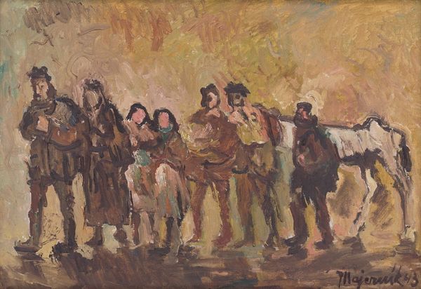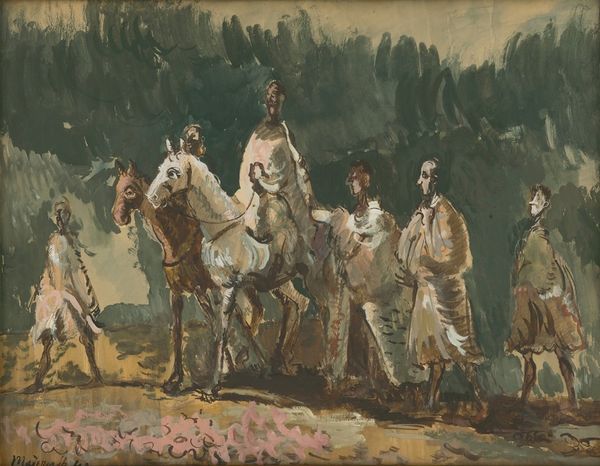 Cyprián Majerník made this painting, Horse Riders, probably sometime in the 1930s or 40s, using oil paint. And it's a trip, right? It's all about the materiality – that loose, washy paint, almost like watercolor, but with the heft of oil. Look at how he builds up the forms, not with careful drawing, but with these confident strokes of color. Each dab and dash feels so intuitive, like he's not just depicting horses, but also the very act of painting them. The horses almost seem to dissolve back into the ground, like the edge where a memory meets the present. Notice the earthy palette – browns, creams, muted greens. It's a world of subdued tones, but within that, there's a real vibrancy. The whole painting reminds me a little of Franz Marc, in that same interest in animals and simplified forms. For Majerník, like Marc, it's less about precision, and more about feeling. It's open-ended, a starting point for your own imagination.