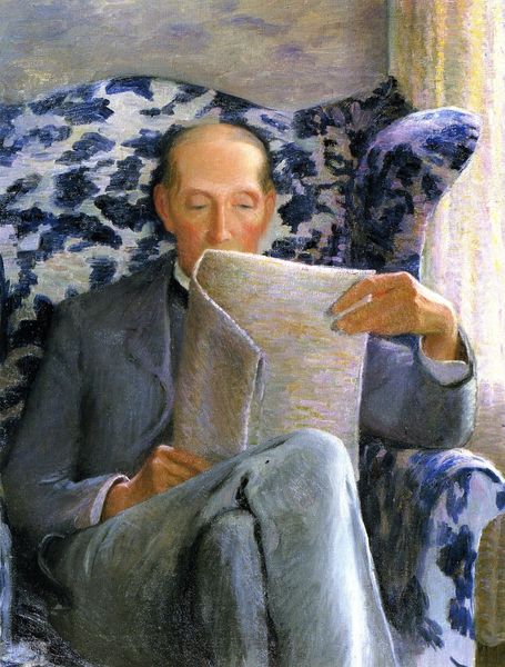 Pyotr Konchalovsky painted this portrait of Sergei Prokofiev, probably in oil, sometime in the early 20th century. It feels like a moment captured, like he was just hanging out in the woods, maybe working. I love that Konchalovsky let us see the painting process. Look at the way he handled the surface, really physical with it. It is thick in some places, almost like he was sculpting with the paint, then thin and transparent in others. Check out the blues in his pants. There's this looseness, especially in how the color varies across the surface. It’s kind of a funny color, not quite believable, but the painting makes up for it with other things. It's like he's saying, "I'm not trying to fool you, I'm just showing you how I see him." Konchalovsky reminds me of someone like, maybe, Alice Neel in the way he captures the essence of a person without getting bogged down in the details. Art isn't about perfection, it's about having a conversation.