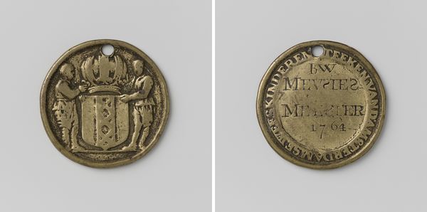 Curator: Look at the texture, the weight – there’s a sense of the handmade here, even with an engraved coin. Editor: Absolutely. What catches my eye is the straightforward depiction of labor and community, reminding us of the networks that sustained trade in the 17th century. It’s a peek into a very specific socioeconomic structure. Curator: This is “Schippersgilde, gildepenning van Jan Theunissz van den Berg” from 1695. It's crafted from metal using engraving techniques. It likely served as a badge or membership token for a shipbuilder’s or shipping guild. Editor: I love the contrast of the delicate linework with the sturdy medium of metal. The slightly naive representation of the ship gives the object an appealing, almost folksy quality. Curator: Precisely. Guilds provided crucial social and economic frameworks. Think of how these maritime trades shaped Dutch identity, especially concerning issues of class, gender, and even colonial expansion. Editor: Right, this simple object speaks volumes about the material conditions of the period. How the sea was both a resource and a workplace, shaping social dynamics in very real ways. This piece acts as evidence of that world. You see how the guild not only defined profession, but provided economic stability and identity. Curator: This brings attention to how collective identity gets forged through craft and commerce. Van den Berg’s guild membership offered protection, access to materials, regulated competition. And it enforced the gender and class hierarchies embedded in society at the time. Editor: These physical objects are valuable points of entry. Analyzing materials and processes offers us a clearer picture of societal structure and class dynamics, dismantling the common trope of the artist genius by emphasizing that craft is labor. Curator: Ultimately, by understanding the guild's role we gain deeper insights into maritime culture, labor rights, and economic interdependence in early modern Netherlands. Editor: Exactly. This little metal disc becomes a portal into the labor and lives of the past, urging us to see the material reality behind historical events. Curator: It is a valuable lens for contextualizing these craft objects. Editor: Precisely, a reminder that art, like any crafted piece, doesn't exist in a vacuum.