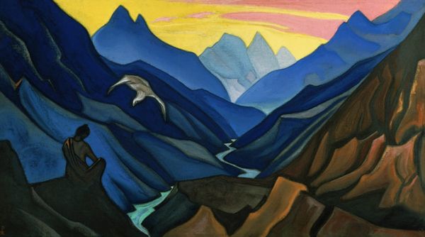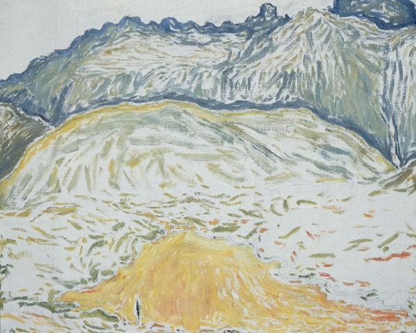 Editor: So, here we have Marsden Hartley’s "Landscape No. 3, Cash Entry Mines, New Mexico" from 1920, made with oil and tempera. It depicts this striking Southwestern landscape… I’m initially struck by the earthy tones and geometric forms. What are your thoughts on this particular piece? Curator: Hartley's landscapes, especially those from his New Mexico period, really push us to consider the materials and the labor embedded in their creation. Notice the heavy impasto and the visible brushstrokes. This wasn’t about illusionism. Hartley used readily available materials, common paints. What does that say about accessibility and his relationship with the art market? Editor: I guess it emphasizes a connection to the place itself? The local materials and maybe a focus on the everyday rather than something idealized? Curator: Exactly. And look at the “Cash Entry Mines.” These landscapes weren't just picturesque views; they represented specific sites of labor and resource extraction. How do you think the knowledge that the landscape depicts a *working* landscape changes how we view it? Does it invite a different consideration of value? Editor: It does make me think about what’s being taken from the land. And, perhaps, how the painting itself becomes a kind of commodity? Curator: Precisely. It’s all about the intersection of production – from the mining of resources to the making of the art. Understanding the context of its creation can prompt a richer, more critical engagement. Editor: That really makes me reconsider what a landscape painting can represent. Thanks for highlighting all that. Curator: My pleasure. Hopefully, thinking about the processes behind art enriches your experience going forward.