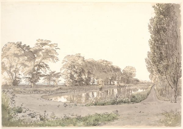 Curator: Let's turn our attention to J. Hildebrand’s "Forårseftermiddag ved Fuglesangsøen i Dyrehaven," or "Spring Afternoon by Fuglesangs Lake in Dyrehaven," an etching and engraving from 1880 held here at the SMK. Editor: It feels so calm, so… perfectly observed. The detail is incredible! It looks like a photograph, yet softer, almost dreamlike. Is that natural light catching the leaves? Curator: Indeed. Hildebrand’s print is a wonderful example of naturalism, showcasing the late 19th-century desire to capture landscapes with scientific accuracy. It depicts a specific location—Fuglesangs Lake in Dyrehaven, a royal deer park north of Copenhagen. Editor: The trees dominate the foreground. That large tree on the right – it’s so majestic! And the lake reflecting the light creates this ethereal, otherworldly glow. Do the trees in the image possess any sort of significance? Are these certain Danish national symbols, or species with inherent value to the nation? Curator: The use of the forest as a cultural symbol was certainly a popular one within artistic circles at the time, as this new medium and technology enabled easier reproduction, and greater appreciation for national lands and resources as locations for recreation among upper-class and wealthy families. Editor: That's intriguing! There's also a very tranquil, almost Arcadian quality about the composition. Curator: I agree. There’s an emphasis on line and form, characteristic of much landscape art from the period. Editor: It evokes a sense of idealized nature, of a world untouched by industrial progress. It speaks of the enduring beauty of the Danish landscape, as imagined and promoted by political figures and public servants alike. Curator: Exactly. Hildebrand uses a newly viable and reproducible print technology to not only meticulously render detail but also shape a narrative around Denmark's natural environment, reflecting broader social values of landscape appreciation and national identity. Editor: The image really shows an idealized and accessible depiction of nature. One that brings a real reverence for the enduring qualities and significance of place that persist for generations. Curator: Precisely, and his work provides a fantastic lens through which to understand 19th-century Denmark.