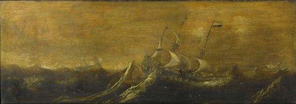 Curator: Well, this is Dalí's "Mountain Lake," currently residing at the Tate. It's undated, which adds to its mystique. It strikes me as a landscape where the subconscious bleeds into reality, and the telephone, perched so precariously, seems almost like a forgotten connection. Editor: It feels oppressive, almost claustrophobic, despite the expanse of the lake. That murky green sky... is that supposed to be comforting? It’s more like a prelude to a bad dream. Curator: Absolutely, it’s unsettling. The telephone, of course, is a recurring motif in Dalí's work, often symbolizing broken communication or frustrated desire. Here, it feels disconnected, perhaps even a little menacing against that backdrop. Editor: I'd argue that the isolation is key. Who is Dalí calling? Or, more pointedly, who isn’t answering? Is the broken telephone a metaphor for political isolation, considering the rise of totalitarian regimes during Dalí's time? Curator: It's quite possible. Dalí was certainly attuned to the anxieties of his era. But perhaps it’s also a broader commentary on the human condition, our perpetual struggle to connect, even when surrounded by the sublime indifference of nature. Editor: Perhaps. Ultimately, the painting leaves me with more questions than answers, which I suppose is the mark of a truly surreal piece. Curator: Indeed, it's a window into Dalí's unique perspective, a world where the familiar is rendered strange and the mundane becomes imbued with a sense of profound unease.