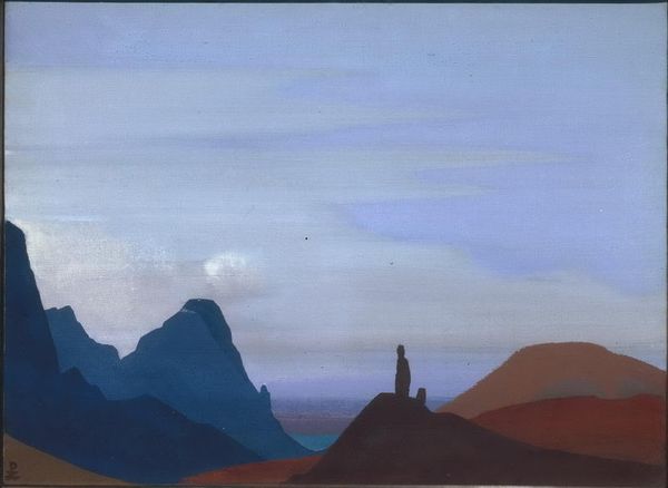 Nicholas Roerich made this painting, Tibet, with what looks like tempera paint on canvas. I find myself wondering about the process. I mean, look at the way the colors are laid down – those soft, almost pastel hues, built up through gentle gradations. It's all about atmosphere, right? You can almost feel the thin air and the stillness of the mountains. The paint itself seems applied in thin layers, letting the texture of the canvas peek through. It gives the whole thing a kind of breathy quality. It feels like a memory, or a dream. Notice that tiny figure standing on the ridge in the foreground. Roerich has given them just enough detail to suggest a human presence, but they're also swallowed up by the vastness of the landscape. It's a beautiful little meditation on our place in the world. Roerich reminds me of Hilma af Klint, in the way that he's using landscape to express spiritual ideas. And, like Klint, he embraces ambiguity, letting the painting speak in a language that's more felt than understood.