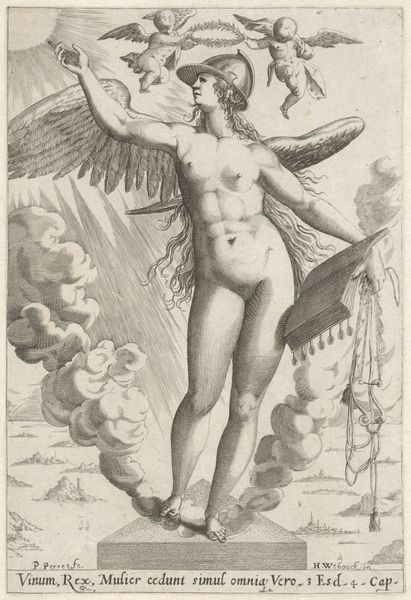 Girolamo Muziano made this drawing, Fortuna auf einer Kugel schwebend und drei Putten, in the 16th century. The immediate impression is one of dynamism and ethereal lightness, achieved through its delicate lines and monochrome palette. Fortuna is depicted in a spiraling pose, her figure elongated and idealized, floating above three putti. Muziano masterfully employs the "contrapposto," giving her figure a sense of movement. The drapery swirling around her accentuates this effect, while the putti below reach upwards. The drawing engages with the Renaissance fascination with classical mythology and philosophy. Fortuna, the goddess of fortune, embodies the capriciousness of fate. Her placement atop a sphere symbolizes the instability and unpredictability of life's events. The very act of drawing, with its emphasis on line and form, invites us to consider the relationship between representation and reality. As you contemplate this image, consider how its formal elements contribute to its thematic concerns, reflecting the period's engagement with antiquity and the nature of human existence.