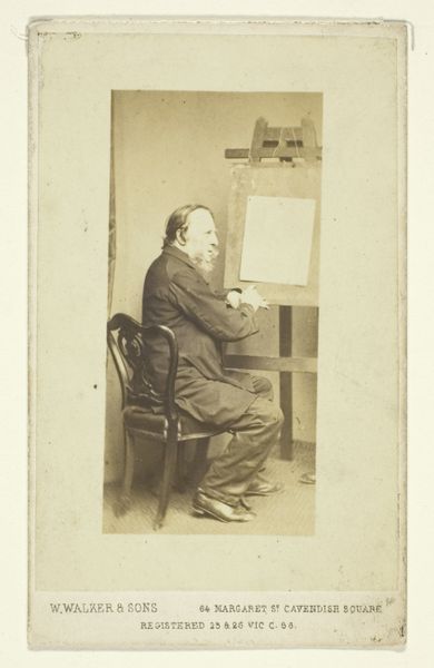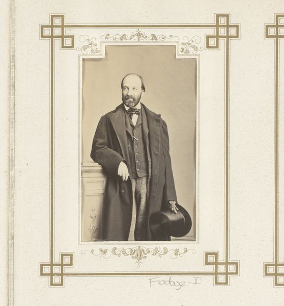 Editor: This albumen print, part of "The Far East: A Monthly Journal" from the 1870s, depicts a formal portrait. It shows a seated man with a mustache, presumably of high rank given the inscription, in what appears to be traditional Chinese clothing. It definitely has a sense of 19th-century formality and also a somewhat romantic exoticism. What strikes you most when you look at this image? Curator: Well, consider the chair upon which "His Excellency Li Hung-Chang" is seated. Is it a throne? No. It seems to be a Western adaptation of a traditional form, reflecting perhaps his status bridging cultures. His hand positioning, the subtle yet firm grip—it's about power, isn't it? Authority communicated through symbolic gesture. Editor: Yes, I see that. And what about the patterns behind him – are those symbolic, too? Curator: Certainly! The intricate lattice work creates a backdrop both decorative and purposeful. Each pattern, repeated, suggests a microcosm of the broader cultural order. Notice how it's deliberately blurred, softening the potential direct comparison between the figure and rigid structures. What memory do these repetitive patterns call to your mind? Editor: It reminds me a bit of a garden, controlled but still part of the natural world. So is the message here about power, control, and nature all working together? Curator: An interesting interpretation. It may suggest an effort to harmonize. To portray a leader at peace and one with his surrounding culture, whilst incorporating western influences. And what do you make of that vase holding the flowers there to the left of him? The objects around a figure are always clues. Editor: It’s very subtle. Almost like an afterthought. But you’re right. It might reinforce the idea of nature, harmony, or even fleeting beauty and ephemeral things. It gives a very delicate almost melancholic mood. It makes me want to do more research about him now! Curator: Absolutely! Indeed, by examining these layers of cultural symbolism, the artwork offers glimpses into both the depicted era and the continuous dialogue between perception, power and identity, wouldn't you agree?