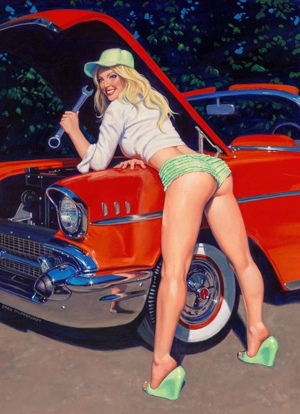 Carrie Graber made this painting, ‘She Has Arrived’, using oil on canvas. The first thing I notice is how smoothly rendered everything is, and the kind of hyper-real quality that gives the painting. Look closely and you can just about make out the brushstrokes, which I love, because they hint at the process, the human element. Then there is the interplay between the pink of the car and the woman's skin, like a dance between form and color. I’m drawn to the area where the shadow falls on the woman's legs. It's painted so subtly, yet it gives the figure a real sense of weight and presence. It’s like Graber is saying, "I see you, and I see the way the light plays on you, and I'm going to capture that." It reminds me a little bit of Alex Katz, in the way it simplifies and abstracts reality, but with its own unique spin. Ultimately, it's a reminder that art is always in conversation, building on what came before, but always finding new ways to see the world.