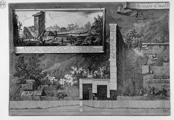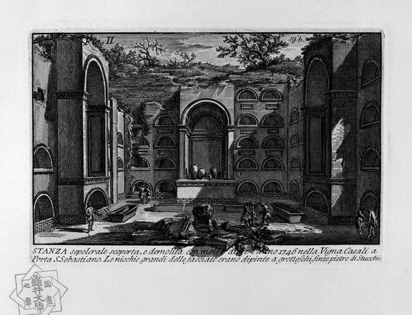 This etching of the Baths of Diocletian was made by Giovanni Battista Piranesi in the 18th century, using the traditional printmaking process of etching. The image is created by incising lines into a metal plate, inking it, and then pressing it onto paper. Here, the physical qualities of the lines, their depth and density, are especially important, as Piranesi uses them to convey the massiveness of the ancient ruins. Etching allowed him to create incredibly intricate detail, seen in the crumbling brickwork and monumental scale. The deep shadows and stark contrasts evoke a sense of drama and decay, emphasizing the passage of time and the eventual fate of even the grandest structures. Piranesi wasn't just documenting these ruins; he was actively shaping their cultural significance. His prints, widely circulated, romanticized the past and fueled a growing interest in classical antiquity. They also participated in a booming art market, connecting the skilled labor of the printmaker with the desires of collectors. By carefully manipulating his materials, Piranesi crafted a lasting vision of Rome's imperial grandeur.