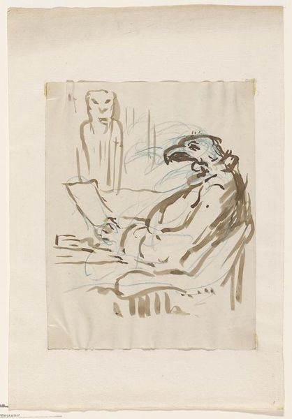 Leo Gestel captured 'Jan Ponstijn, mandoline spelend' in an undated drawing now housed in the Rijksmuseum. The image, set against a neutral background, is defined by angular lines and planes. Gestel disrupts traditional representation, fracturing the figure into geometric forms that echo the era's Cubist explorations. Notice how the intersecting lines create a sense of depth and movement, even within the static medium of drawing. Gestel's emphasis on structure reflects early 20th-century ideas where artists sought to deconstruct and reassemble the visual world. What we see is not merely a portrait but a study in form, where the interplay of lines and shapes takes precedence over realistic detail. The drawing presents a tension between representation and abstraction. Gestel invites us to reconsider how we perceive and construct meaning from visual information.